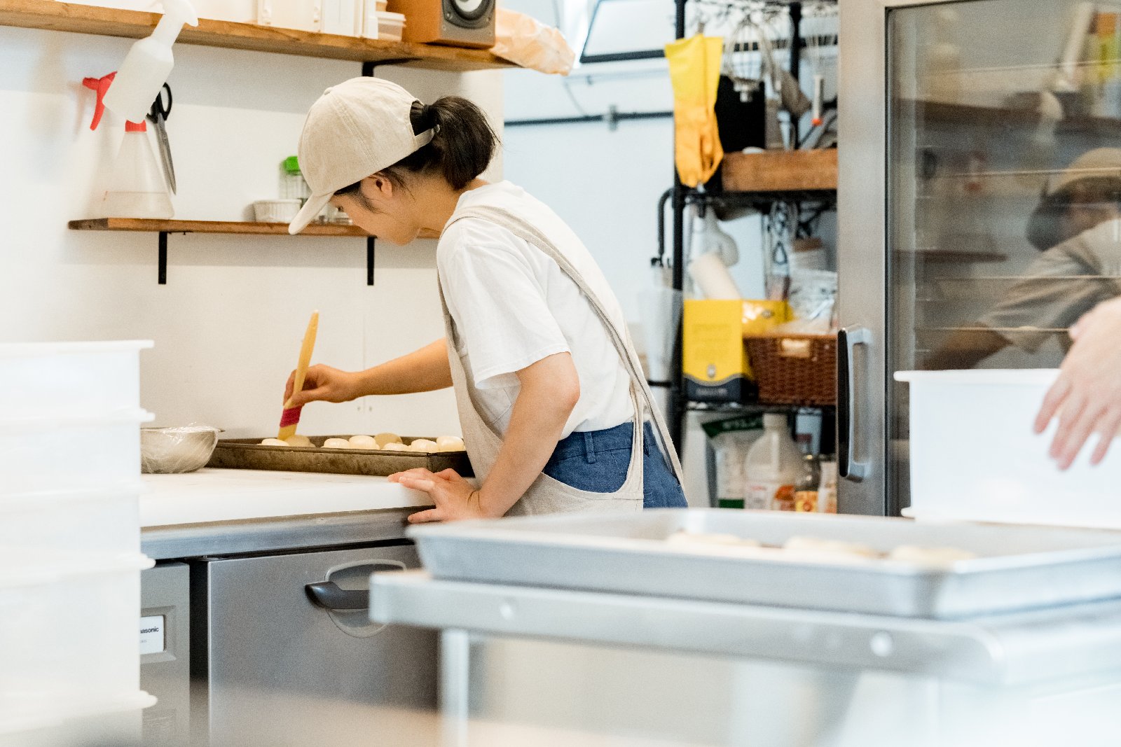 - パン生地の型入れ